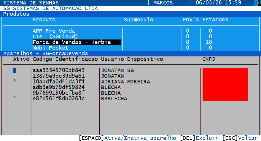 No Msenha a solicitação de autorização deve ser confirmada marcando o aparelho como “Ativo”.