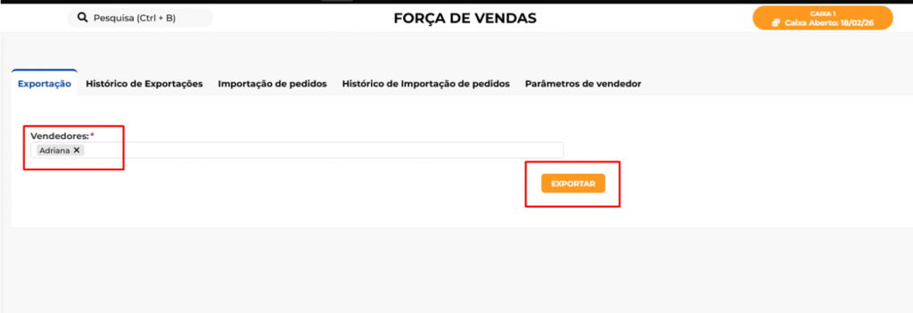 Após as configurações fazer a exportação para o Força de Vendas no caminho Loja> Integrações> Força de Vendas.