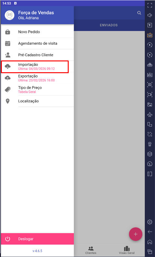 Aplicativo Força de Vendas na versão 4.6.5 ou superior.