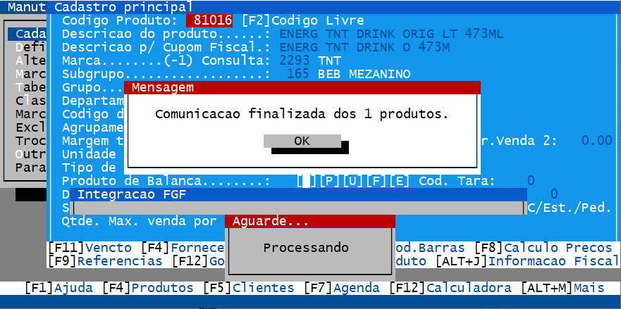 OBS.: Ao realizar o cadastro ou alteração de um produto, o mesmo também será enviado para a FGF.
